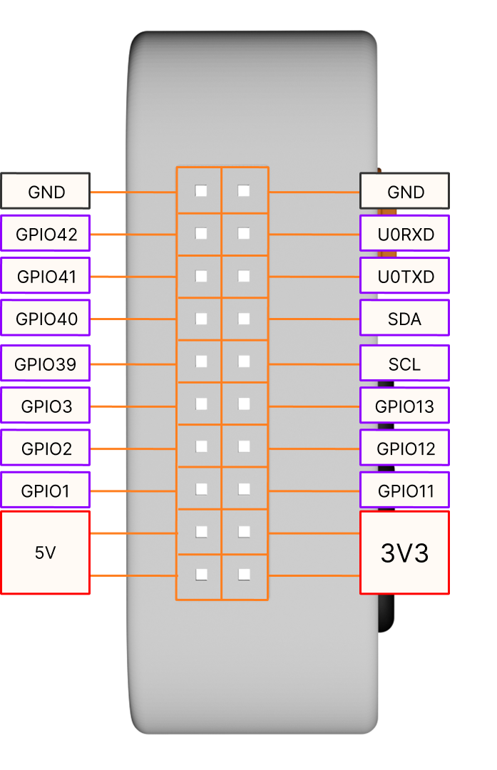 The Kode Dot has two connectors, one 20 pins on the top and another magnetic 4 pins on the back.Top 20 pin connector